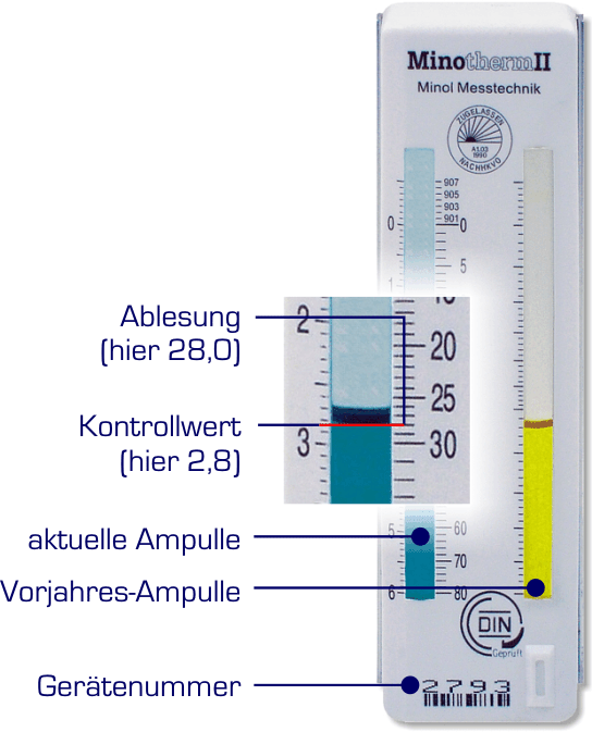 - Verdunstungsheizkostenverteiler messen Verbrauch nur über Verdunstung einer Flüssigkeit