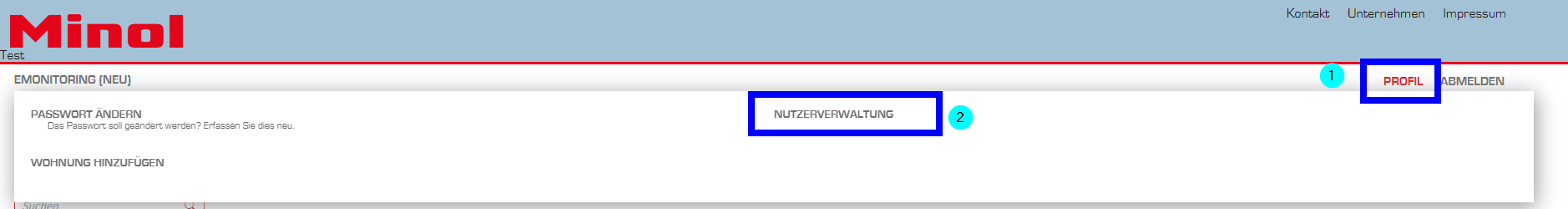 Diese haben dann wiederum die Möglichkeit über ihren Nutzerzugang im Minol Online Portal einen Unterzugang für ihren Mieter zu erstellen. Hierbei müssen sie sowohl die E-Mailadresse des Mieters hinterlegen als auch den Zeitraum seiner Zugriffsberechtigung. Im Falle von Mieterwechseln können diese ebenfalls an der Stelle gepflegt werden. Mit Beendigung der Zugriffsberechtigung des Eigentümers (z.B. bei Verkauf der Wohnung) wird stets auch automatisch der Zugang des Unternutzers (Mieter) abgegrenzt. Die dazugehörige Funktion „Nutzerverwaltung“ ist für den registrierten Nutzer unter dem Reiter „Profil“ aufrufbar.